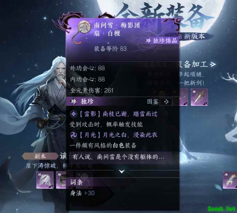 逆水寒手游连云寨南问雪独珍获取攻略连云寨南问雪独珍获取: 前往连云寨,找三兄弟划拳 与三兄弟对话猜拳前,可开启望气提前知晓对方会出什么 找巴仙寿出布-连云寨(1211,851) 找武魁首出剪刀-连云寨(1217.864) 找司喜财出剪刀-连云寨(1229,863) 最后开箱获得独珍加工材料白檀扇骨-连云寨(1221,858) 【白檀扇骨】 道具说明:独珍加工道具 获取方式: 在连云寨主寨附近三兄弟划拳获取 如何加工:在打造-加工-选择改造:梅影团扇配方,放入南问雪·梅影团扇与本道具可加工为南问雪梅 影团扇·白檀 【南问雪·梅影团扇】 装备等级:68 装备等阶:79/83(微瑕为77/81) 装备部位:全流派独珍饰品 独珍属性:【雪影】南枝已谢,踏雪而过 受到攻击时,有概率发动”镜天照影 【月光】月光之白,浸染此衣 装备的颜色,或可彰显穿戴者的风格 获取途径:击败剑指镜天阁BOSS南问雪有几率掉落