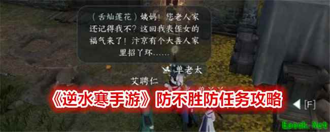《逆水寒手游》防不胜防任务攻略1、到连云寨792.855处对话“单老太”(看不到NPC就换线),两个选项分别对应两个结局,自行选择即可
