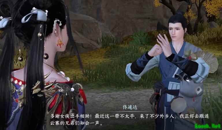《逆水寒手游》截货贼奇遇攻略1、来到连云寨的坐标(1087,1275)的位置,可以看到佟速达和另外三个角色,如果没有其他的角色可以点击右上角的线路换线寻找。