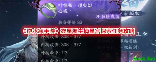 《逆水寒手游》凝星聚尘摘星宫探索任务攻略凝星聚尘摘星宫探索任务 1、前往摘星宫(256.337)摘星台上,跟随星光轨迹移动,收集星辰之屑 2、前往摘星宫(103.102)摘星台上,跟随星光轨迹移动,收集星辰之屑 3、前往摘星宫(335.256)摘星台上,跟随星光轨迹移动,收集星辰之屑 4、收集完成后回到中心平台摘星宫(256.253)开启宝箱即可完成 最后通过八门探奇在杜门内击败叶惊弦后前往(摘星宫,246,265)打开大宝箱即可获得叶惊弦·须臾幻心独珍戒 任务奖励:江湖百家技能-天魔啸·希声