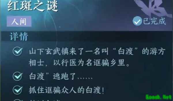 以上就是小编整理带来的逆水寒手游红斑之谜完成方法介绍,更多相关游戏攻略,请关注手游网! 本文内容来源于互联网,如有侵权请联系删除。 |