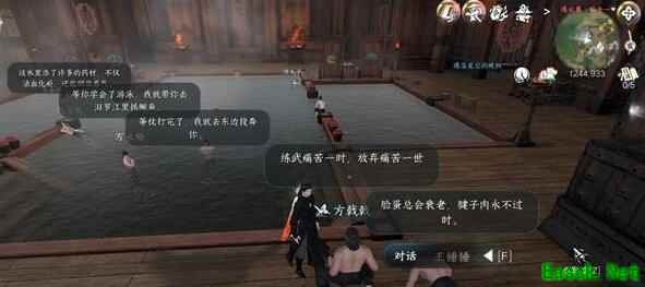 4、到连云寨澡堂1256.954处孙煜对话。 5、到连云寨澡堂1244.933处方戟对话。 6、最后返回白大娘处对话即可,几个选项分别对应不同结局,自行选择即可。