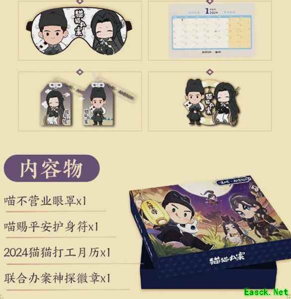 2、活动期间,官方将送出1000份逆水寒×《大理寺少卿游》联名周边礼盒,只需在官方活动评论区留下你的新年愿景、或是江湖趣事即可参加。 礼盒内包含:括喵赐平安护身符*1、喵不营业眼罩*1、联合办案神探徽章*1、2024年猫猫打工月历*1