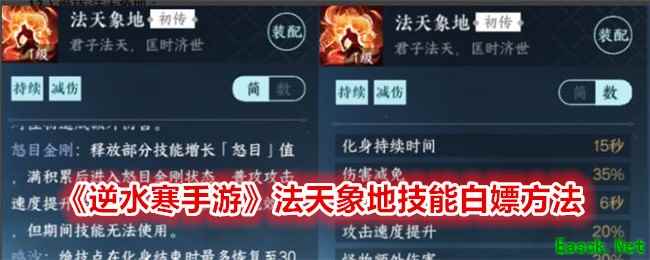 《逆水寒手游》法天象地技能白嫖方法绝技·法天象地: 白嫖方式:奇遇逍遥两公孙获得上卷,3月8日华章·天香捕快获取下卷合成