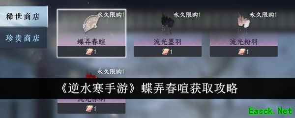 以上就是小编整理带来的逆水寒手游蝶弄春喧获取攻略,更多相关游戏攻略,请关注手游网! 本文内容来源于互联网,如有侵权请联系删除。 |