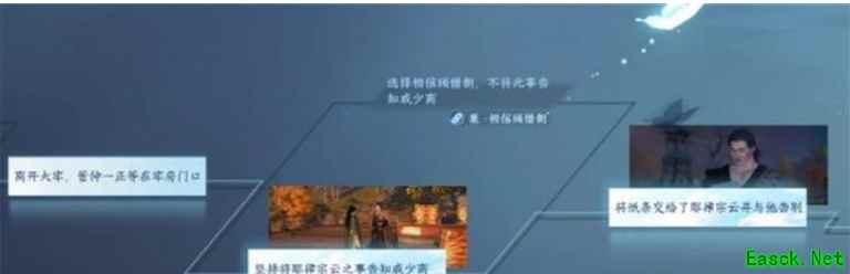 (2)第五章(江南风景不曾谙): 虽然第五章中有很多与顾相关的选项,但由于这些选项会直接作用到第五章的结局,所以我们直接将结局进行分类。 第五章有四组结局,我们将其分为两大类。 好结局: 迷途未远—浩天生还—畏罪自伤—官差活着 坏结局: 今是昨非—浩天过世—三刀自尽—官差身死 每个结局的完成方法大家可以搜搜第五章攻略,篇幅有限就不多赘述了。 (4)第七章(连云肝胆生死同): 共四组选项,自行看图即可。