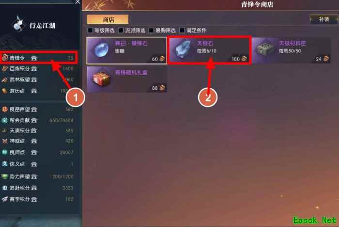 1、青锋令兑换 每周可通过青锋令兑换商店兑换10个,需消耗1800个青锋令,共可获得500点剑魄。