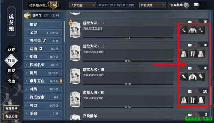 ⑥玩法奖励:完成宝宝出游玩法,除了会增加宝宝的成长值外,还会奖励宝宝时装以及对应的说英雄卡。