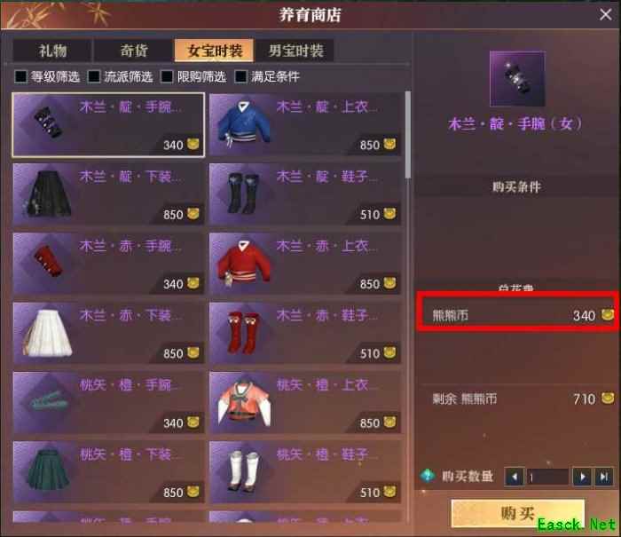 五、 熊熊币商店 熊熊币可通过养育商店中兑换宝宝的时装来装扮宝宝,也可兑换手推车、称号的奖励。