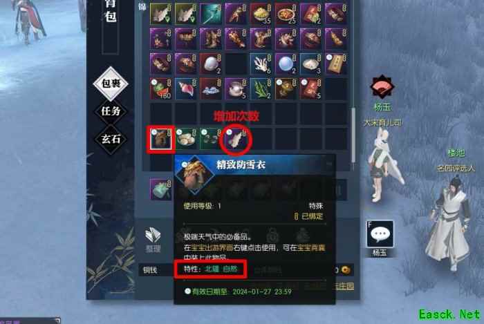 ④出游道具会显示特性,宝宝携带特性的物品出游会去特定地点。 ⑤宝宝出游玩法每周仅可完成一次,不过玩家可通过养育商店花费500点游历点兑换一个【宝宝专用追风翼】,可额外增加一次宝宝出游机会。