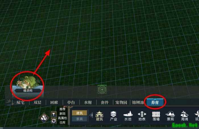 二、 宝宝日常 ①点击庄园建造-嬉游园,摆放在庄园内,宝宝会默认放在床上。