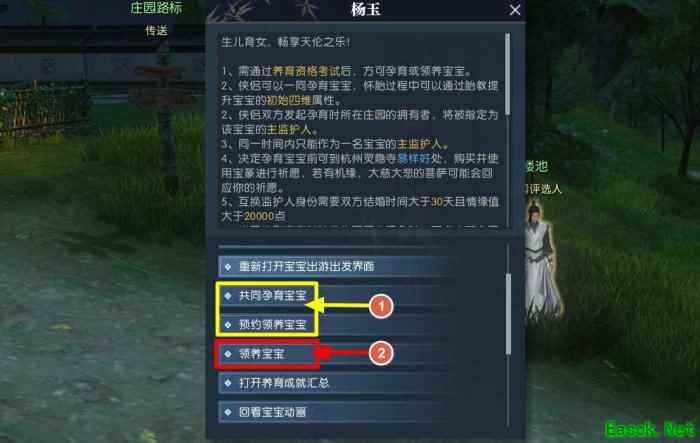 《逆水寒手游》养育宝宝方法介绍一、 领养&孕育宝宝 ①有情缘的玩家可以与情缘组队,选择【共同孕育宝宝】,等待48小时后,双方均可获得宝宝。宝宝的性别是随机的。 ②孤狼玩家可直接选择【预约领养宝宝】,等待48小时后,点击领养宝宝。领养宝宝,可直接选择领养宝宝的性别。