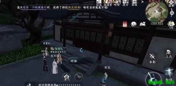 2、接着前往1358,833坐标位置处,在万柳书院位置处对话。