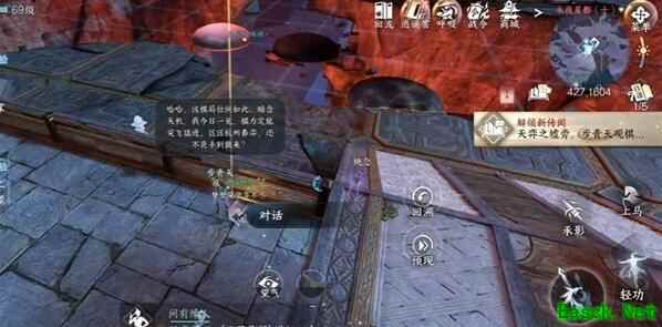 《逆水寒手游》一步登天任务攻略1、第一步需要来到地图上坐标427,1604位置处,解开解锁任务。