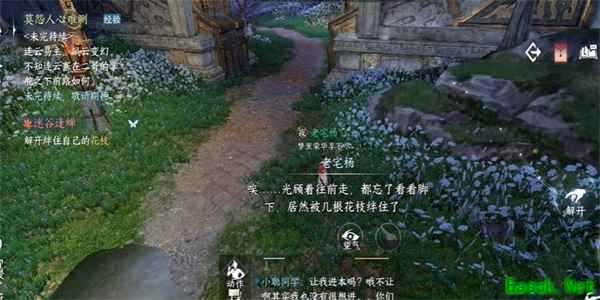 2、接着我们就在此解开绊住自己的花技,和NPC进行对话。