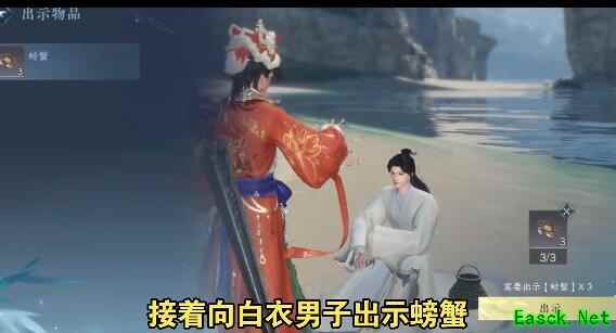 4、战斗结束后对话白衣男子,给他抓螃蟹,然后前往莲花楼,在仙居原地图上右上角,坐标是(918,134)附近