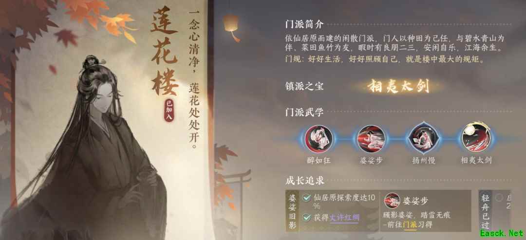 任务奖励 成就:我只想安静地种田。 图鉴:麻辣枸杞莲子羹和仙居莲迹。 结识异世侠友“李莲花" 以上就是小编整理带来的莲花楼门派加入攻略,更多相关游戏攻略,请关注手游网! 本文内容来源于互联网,如有侵权请联系删除。 |