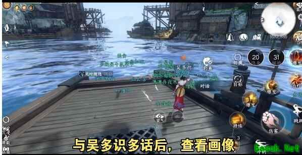 2、触发了奇遇之后对话NPC“吴多识”,对话完给个画卷,看完继续对话,然后前往(仙居原316,913)附近,进入剧情
