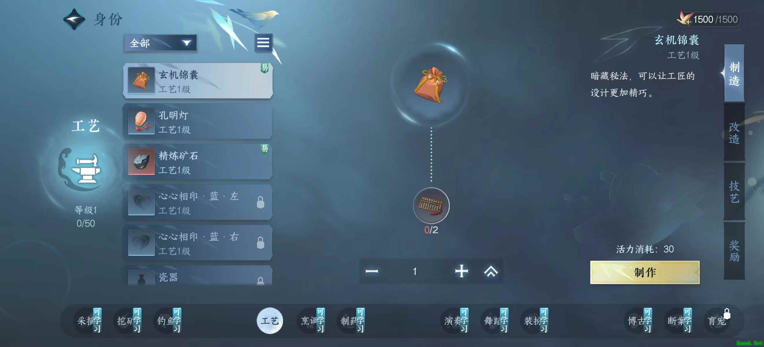 2、玩家需要在商城中购买两个【机巧工具组】,然后在身份中选择【工艺】;