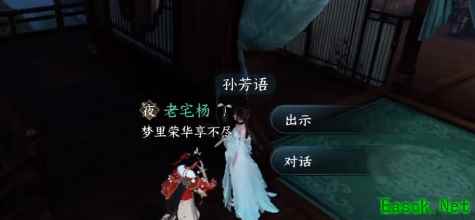 3、然后到下图【535,273】阁楼位置,找到【孙芳语】NPC对话;