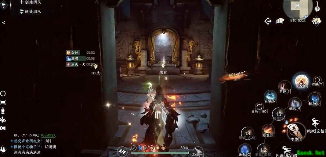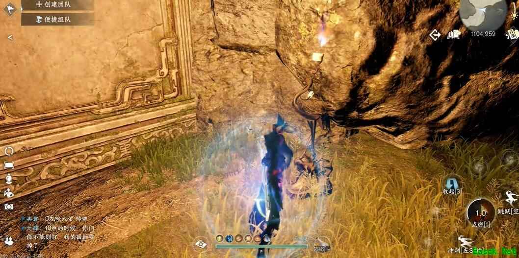 2、然后我们来到坐标(1104,959)位置,进入后躲避青铜巨像的视线。
