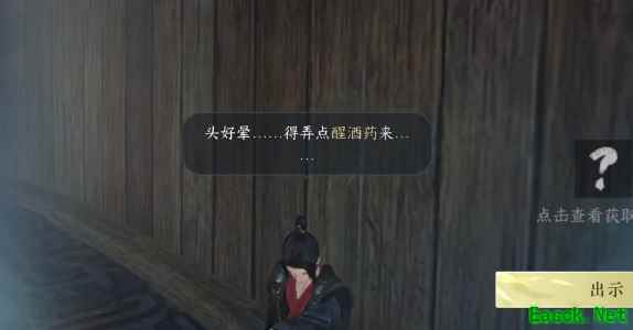2、对话结束后我们来到附近的擂台旁(1080,1119)找到npc程末出示醒酒药;