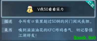 《逆水寒手游》肯德基联动第一弹活动介绍近日,一股神秘力量通过异世幻境【永夜星都】的次元裂缝渗透进了逆水寒! 据悉,近期江湖怪状与此神秘力量息息相关,有不少人都中招了,染上了一种奇怪的“症状”:食欲大增,对炸鸡欲罢不能;在星期四会异常兴奋,并且还会到处索要50铜币! 诸多怪相令人匪夷所思,如此疯狂的力量是何人所为?本台记者逆小寒为您带来实时报道: