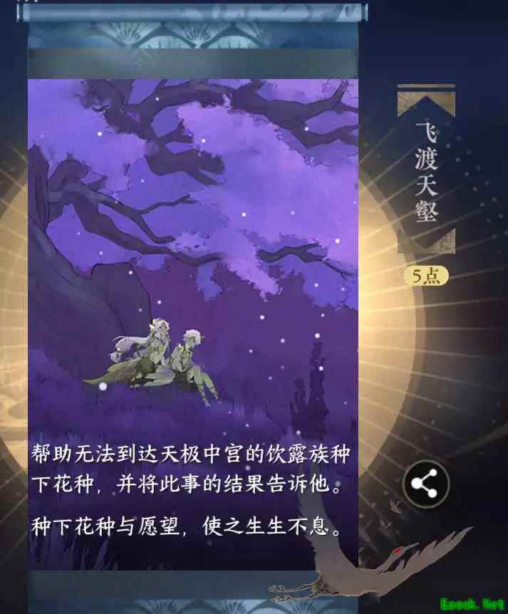 达成条件: 帮助无法到达天极中宫的饮露族种下花种,并将此事的结果告诉他