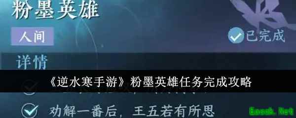 以上就是小编整理带来的逆水寒手游粉墨英雄任务完成攻略,更多相关游戏攻略,请关注手游网! 本文内容来源于互联网,如有侵权请联系删除。 |