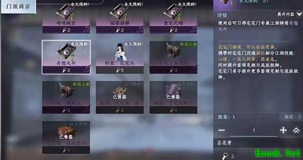 点击宅宅门商店,可以兑换技能和外观