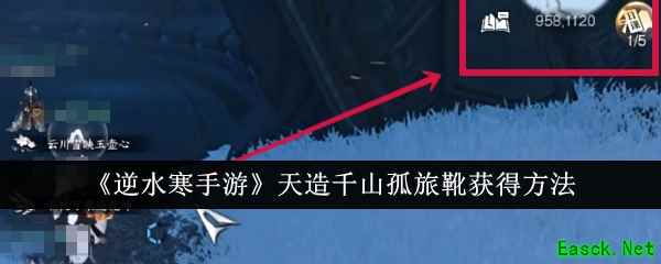 《逆水寒手游》天造千山孤旅靴获得方法1.来到坐标白帝城【958,1120】洞口。