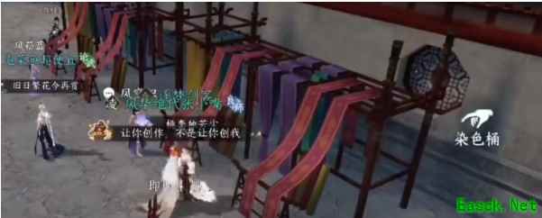 6、回到(1231,746)处,使用染料给她们染衣服,具体颜色为绿色、南雁红色、轻鹤黄色、阿鸿紫色。 7、完成染色后会获得一个宝箱,打开宝箱会获得绑玉奖励。
