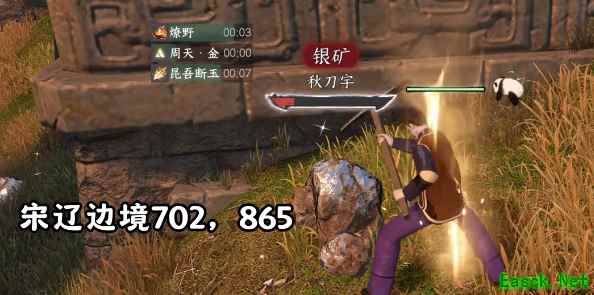 5、前往坐标宋辽边境702,865。 6、使用活力挖取【银矿石】即可。