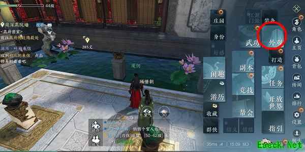 《逆水寒手游》更换服装攻略答:在外观页面进行更换 1、玩家进入游戏后,点击右侧菜单栏中的“外观”选项。