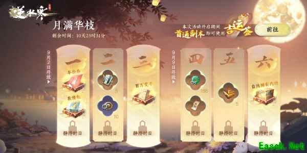 《逆水寒手游》2024中秋活动内容介绍节日限时签到活动【月满华枝】 持续时间:2024年9月2日5:00至2024年9月23日5:00 领取百万交子,容华阁半价券,领取自选稀有内功、150纹玉抵扣券、金色内功宝箱、绑玉等精美奖励,并且在活动期间首通副本,即可同步使用吉运签,打一次副本领两次奖励。