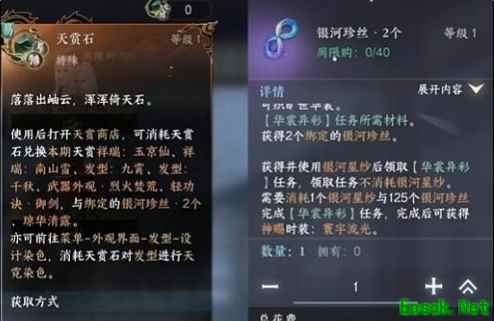 2、大概需要充值34万才能够获得足够数量的道具。 3、其中购买大材料银河星纱需要5w,125个小材料银河星纱可使用天赏石兑换获得。