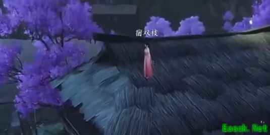 2、前往596,522,途中会遇到桃花迷阵。 3、在第三个灯的位置,不断往右上的草丛上冲刺,即可突破。 4、来到屋顶上,会遇到宿双枝,解锁传闻。
