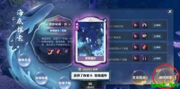 逆水寒手游幽海迷梦卡片怎么获得1、首先点击珊瑚,然后进入海底探索界面,接着点击图中标记点处的【领取】按钮。