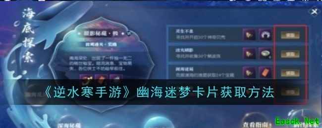 以上就是小编整理带来的《逆水寒手游》幽海迷梦卡片获取方法,更多相关游戏攻略,请关注手游网! 本文内容来源于互联网,如有侵权请联系删除。 |