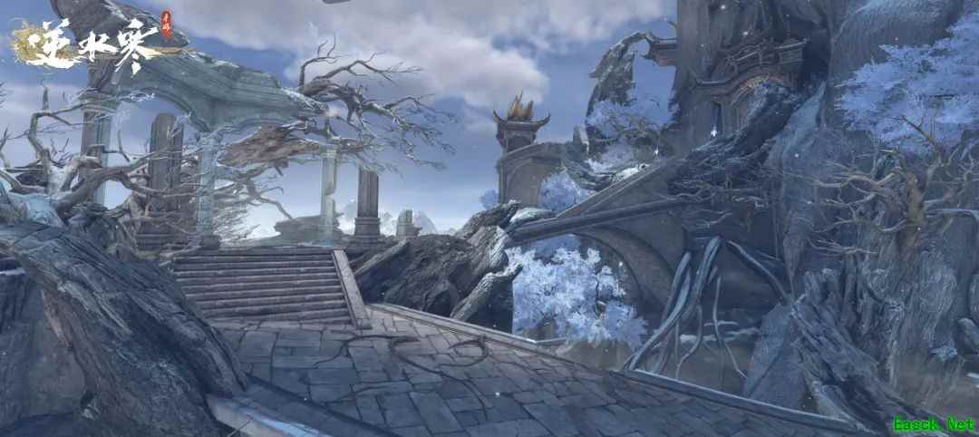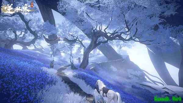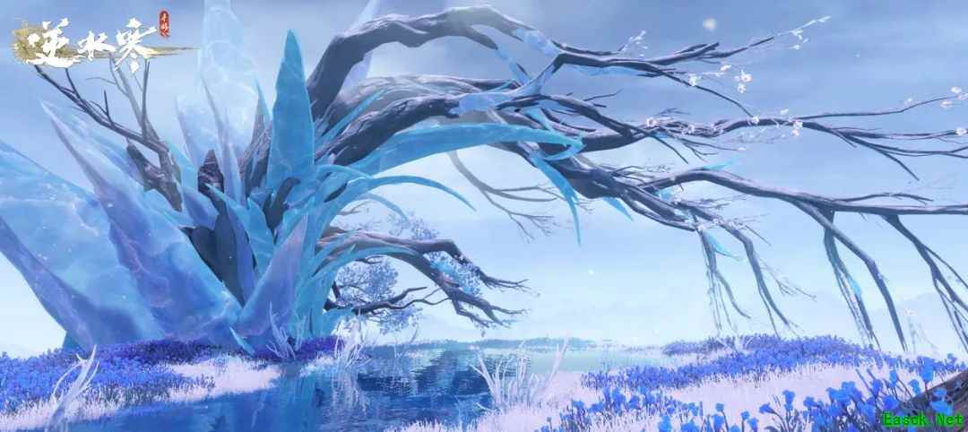 《逆水寒手游》九光寒林地图介绍:【寒林古道】 寒花带雪满山腰,琼枝冰珠凝玉条。藏幽千年的九光秘境,近在眼前。此身一去,霜雪不惧
