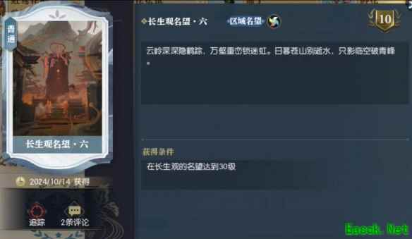 《逆水寒手游》说英雄卡长生观名望六获取方法答:长生观区域名望达到30级即可 1、通过做市井百业航海家任务,来获得长生观区域名望