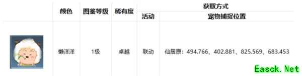 《逆水寒手游》懒洋洋坐标一览懒洋洋 图鉴等级:1级; 稀有度:卓越; 获取方式 活动:联动; 宠物捕捉位置:仙居原:494.766、402.881、825.569、683.453;