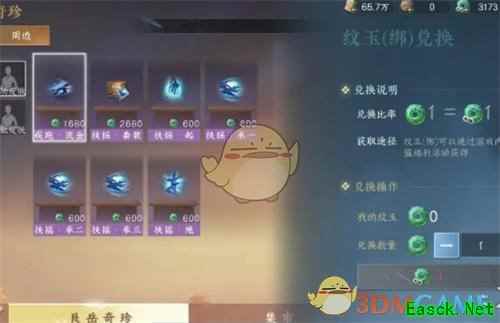 3、玩家在使用限定纹玉购买物品时,还可以选择搭配代金券和半价券进行使用。 4、限定纹玉还可以用来购买绑凿,购入比例为180限定纹玉=1个绑凿。 5、此外,限定纹玉也能够转化为绑定纹玉。