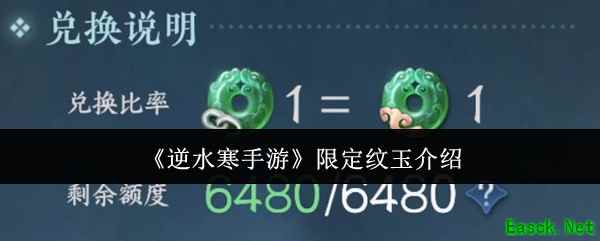 以上就是小编整理带来的逆水寒手游限定纹玉介绍,更多相关游戏攻略,请关注手游网! 本文内容来源于互联网,如有侵权请联系删除。 |