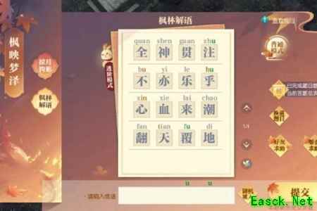 枫林解语 1、提供【普通】【进阶】两种模式供选择,普通模式每日解锁一道新题,共14题。
