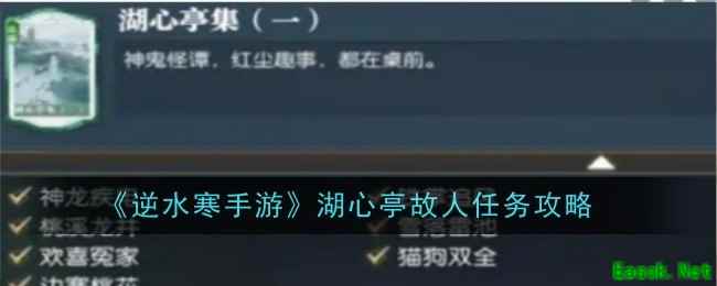 《逆水寒手游中?有着许多任务,湖心亭故人则是逸闻任务中的一个,然而很多玩家却不知道这一任务应该怎么过,接下来小编为大家整理了相关的攻略,还未通关的小伙伴一起来了解一下吧。