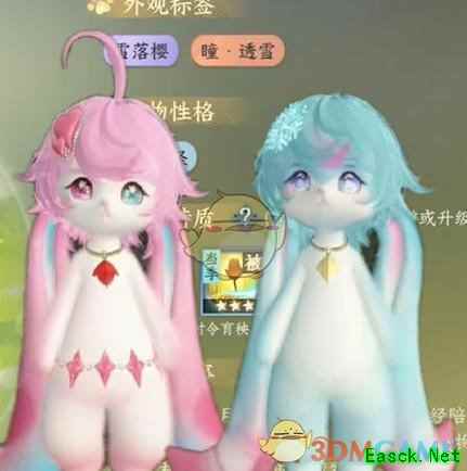 《逆水寒手游》福宝宝繁育方法1、蓝色和蓝色繁育只能繁育出上蓝下粉的。