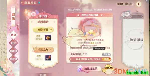 首先,打开【恋恋笔记】,找到第二期任务,点击下方的【折星星】。 你需要收集 5200颗折星星,这可以通过完成任务或者参与活动来积累。 2、前往天极地图: