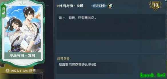 3、玩家的浮岛等级达到9级即可获得【浮岛与海·发展】; 4、该卡是一个系列的卡,等级达到12级可获得【浮岛与海·繁荣】。