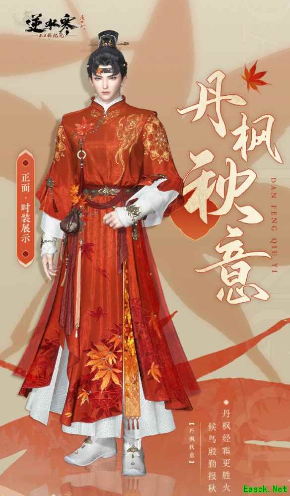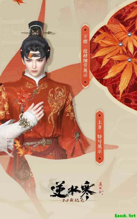 《逆水寒手游》丹枫秋意外观一览:上线时间 2024年11月28日 外观展示 1、男号